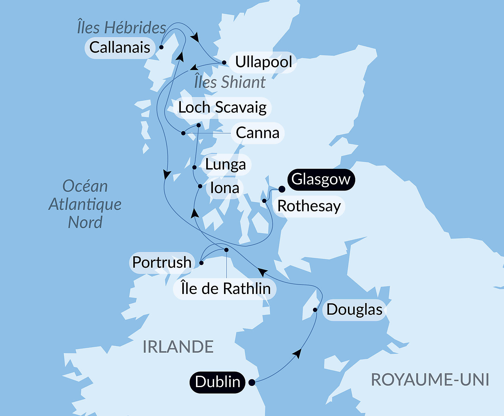 Vous rejoindrez enfin Glasgow, votre port de débarquement.